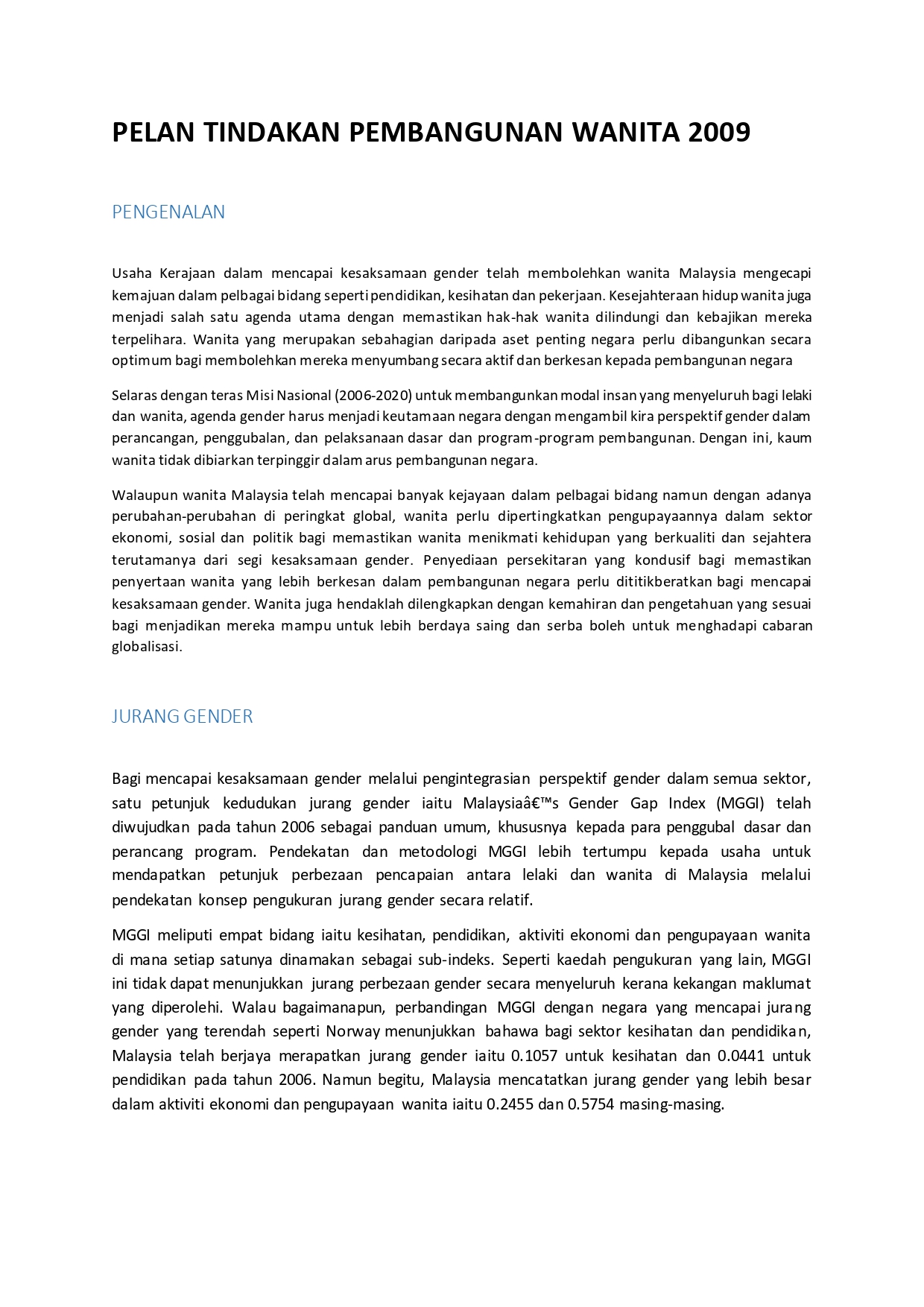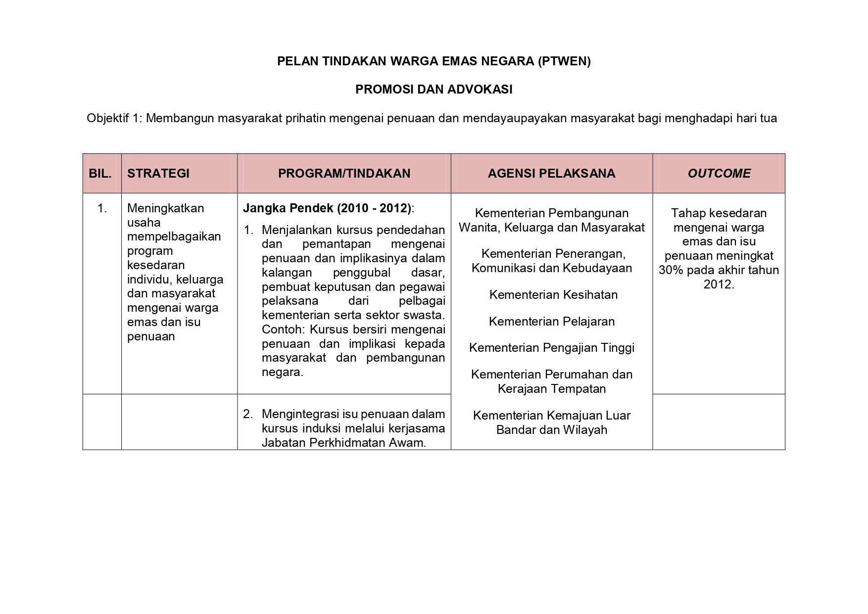 PELAN TINDAKAN / STRATEGIK KPWKM