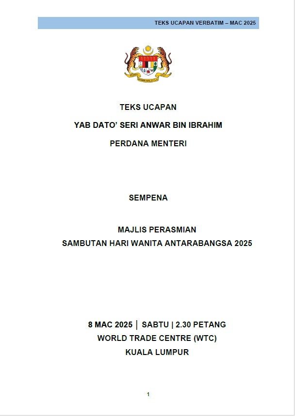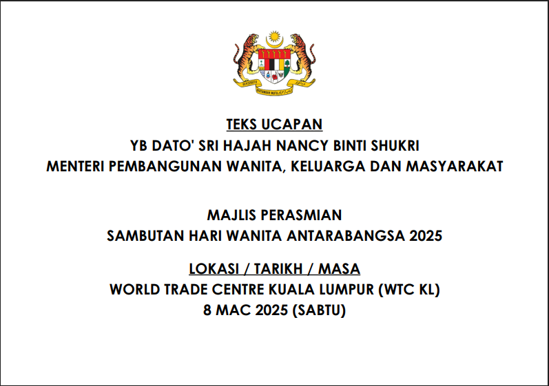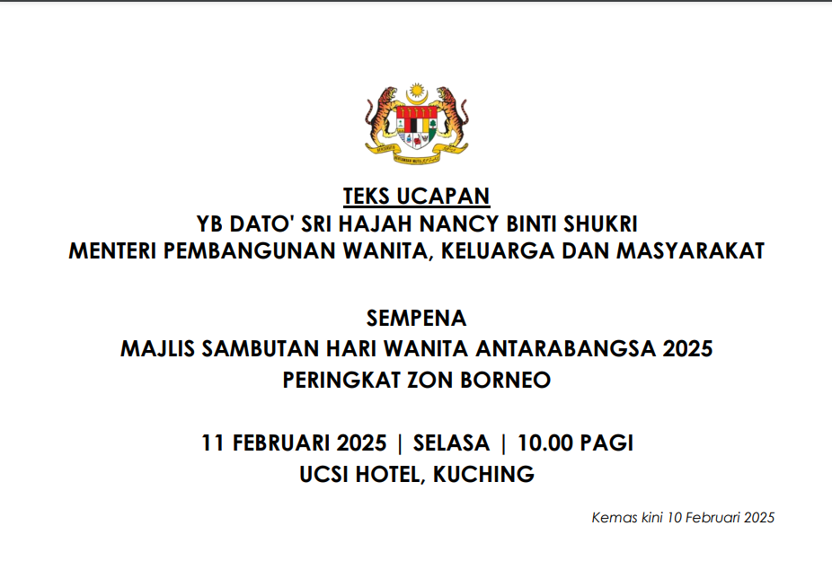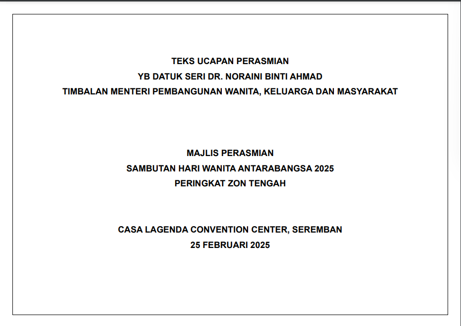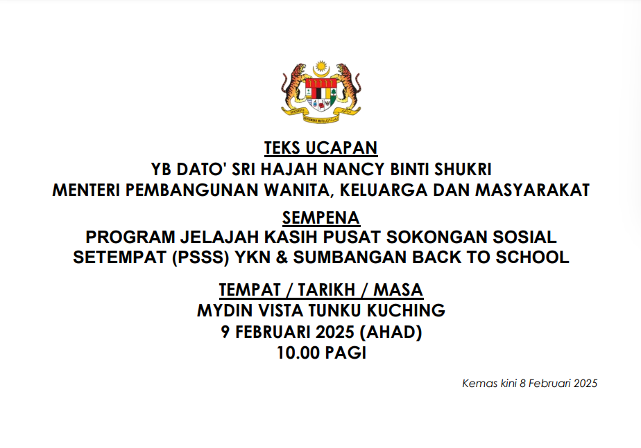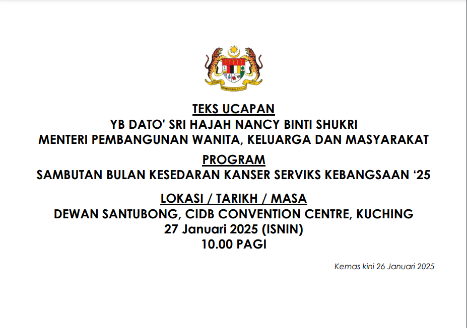 TEKS UCAPAN MENTERI / TIMBALAN MENTERI